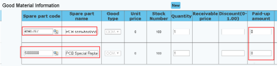 4.2.2 For the second line: Record the visual code “S000008” in the “spare part code”, and charge the actual fee.