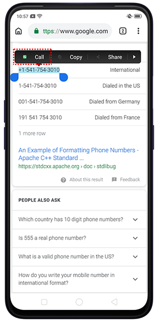 Note: The Smart Text Selection will still suggest the Call option even if the selected number may not be a valid phone number in your region.