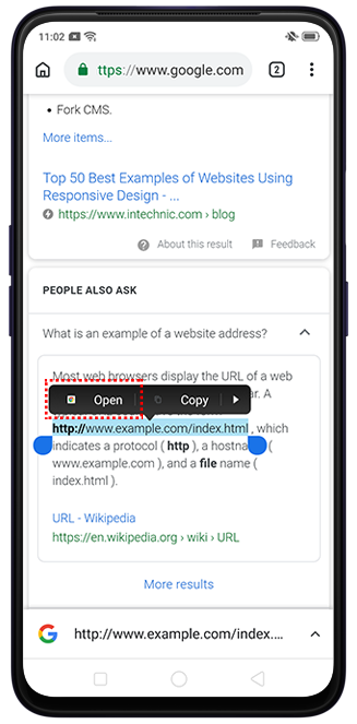 Chrome Search: Select a web address and the Smart Text Selection will suggest the Chrome app. Tap Open to open the web page.