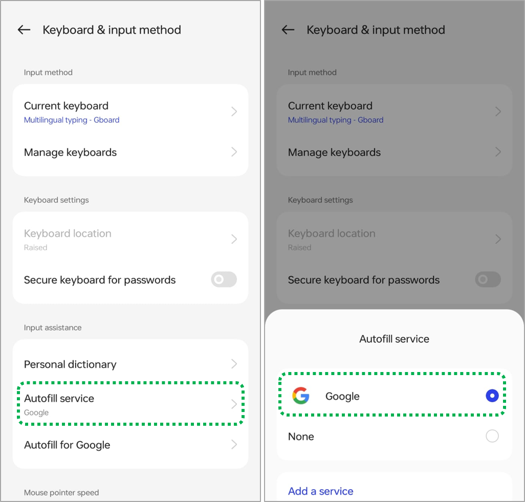 Before proceeding, please ensure you are running the latest version of the Google Play Services app. Visit this link to check & update it. And after that, Go to [Settings] > [Google] > [Services] > [Auto-fill] > Enable [Auto-fill with Google] > Turn on [Use Auto-fill with Google].