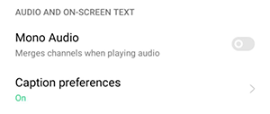 Audio and On-Screen Text: Includes Mono Audio and Subtitles/Caption preferences.