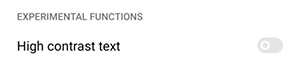 Experimental Functions: Includes High contrast text.