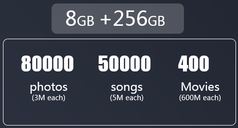 8G RAM gives smooth operation while 256G storage saves anything as you like. Here are the numbers: