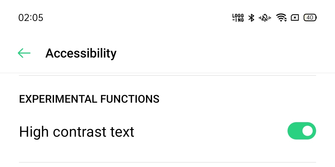 *High-contrast text is an experimental feature, so it might not work correctly everywhere on your device.