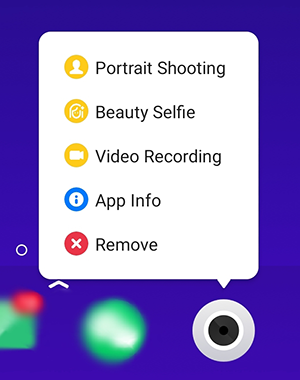 Go ahead and try it with your Camera app, so you can see shortcuts to 'Portrait Shooting', 'Beauty Selfie' and 'Video Recording', and instantly start your shooting experience.