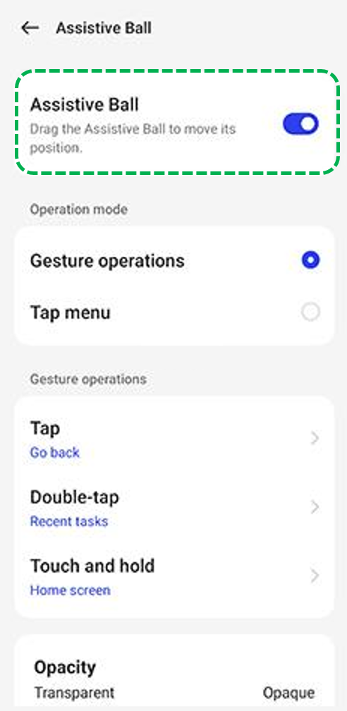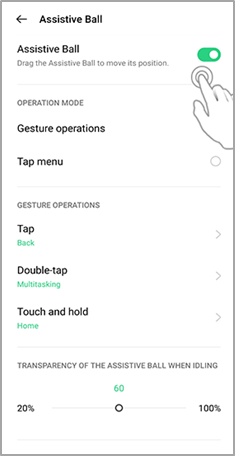 Go to [Settings] > [Convenience tools] > Enable [Assistive Ball].