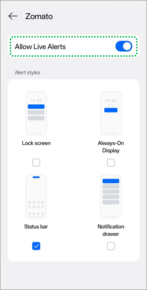 App alerts: Limited apps are available in this option such as Swiggy, Zomato, and Spotify. You can choose the alert styles you want for each app.