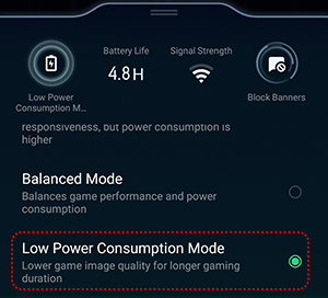 , tap the gaming mode and select [Low Power Consumption Mode].
