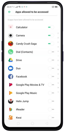 Select the apps you want your child to access.