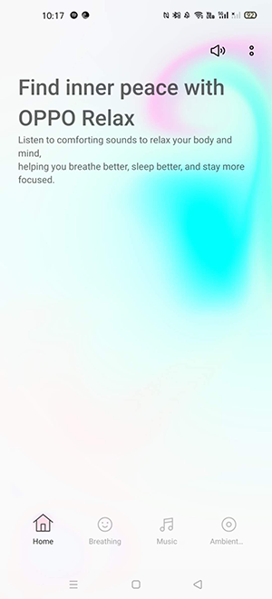 OPPO Relax consists of 4 parts: Homepage, Breathing, Music and Ambient Sounds.