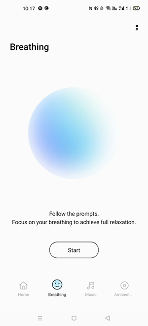 Go to Breathing from the homepage and then tap Start;