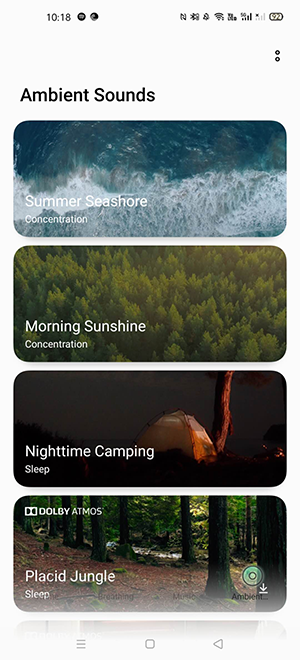 With Dolby Atmos® and other natural sound effects, you can relax before sleep, or use them for breathing exercise and during meditation.