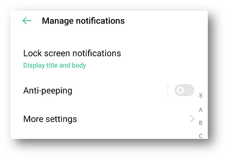 Go to [Settings] > [Notification & status bar] > [Manage notifications] > toggle [Anti-peeping] to enable. *It will ask you to enter your lock screen password.