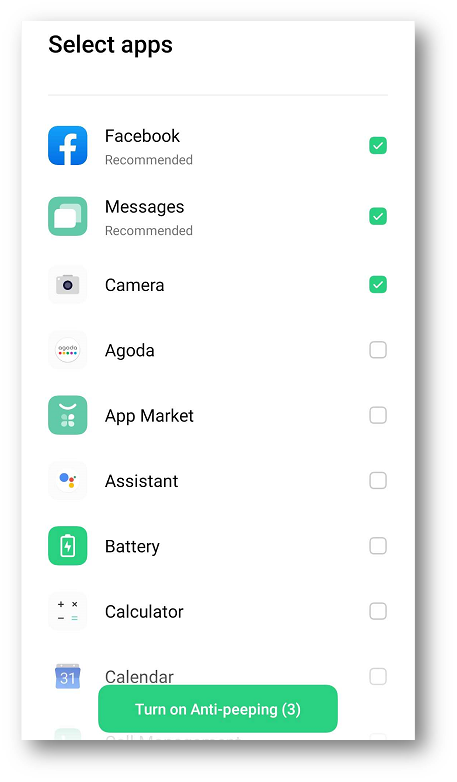 Select the apps you want the notifications to be kept away from other people, then tap [Turn on Anti-peeping].