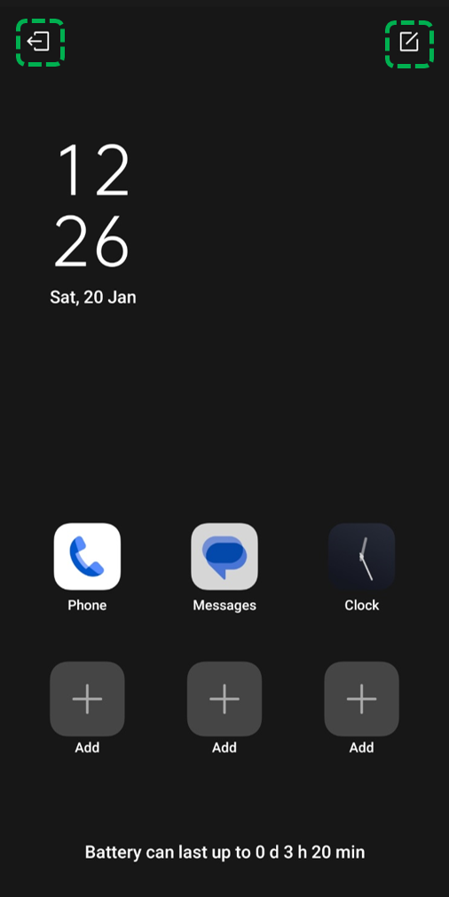 After enabled, dark mode will be enabled and you will get a screen with the 6 apps and the estimated remaining time will be shown, You can add apps by tapping [Add] and To disable the Super Power Saving Mode, tap [] the and then [Exit Super Power Saving Mode]. Super Power Saving Mode’s standby time stimulates six applications selected and running in Super Power Saving Mode. Individual application's standby times assume no other apps are selected and/or running in Super Power Saving Mode. The displayed remaining battery power may vary from device to device.