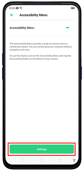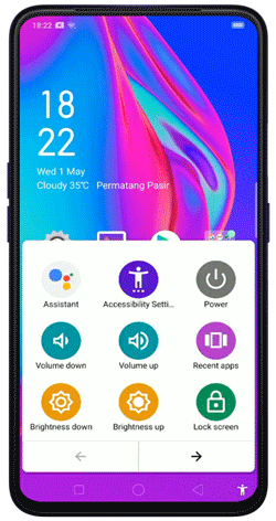 On your home screen, open [Settings] > [Additional Settings] > [Accessibility] > [Accessibility Menu]. Toggle on [Accessibility Menu] / [Shortcut] and tap [OK] / [Allow] to allow access.