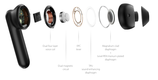 OPPO Enco Free headphones have massive 13.4 mm high-resolution dynamic driver units with three types of diaphragms.