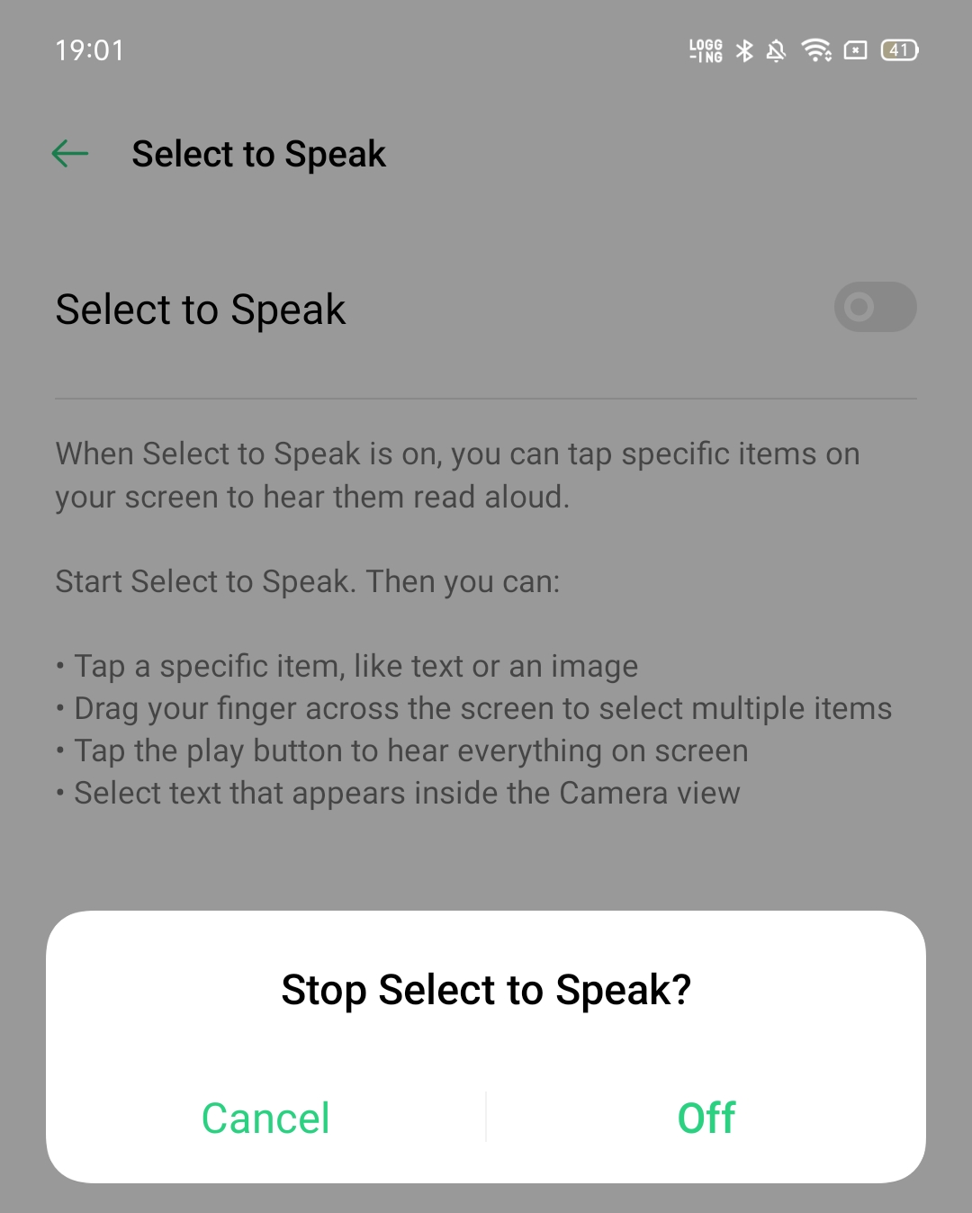 Turn off Select to Speak