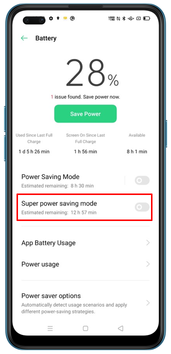 Situation: You want to know about the new Super power saving mode in Reno4 Series.