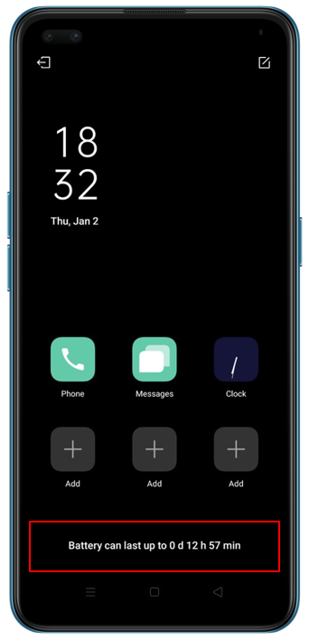 In Super power saving mode, six apps can be opened, among which Phone, Messages, and browser are default but changeable, and the remaining three can be selected by the user. At 10% and 5% power, a window will pop up to remind you to turn on the Super power saving mode. You can also manually turn on the Super power saving mode using these 2 ways:
