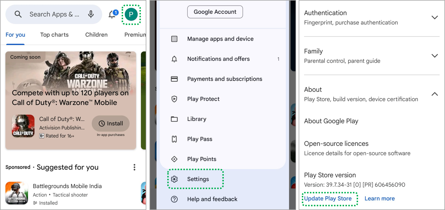 Open [Playstore App] > Click on [Profile] > Click on [Settings] > Click on [Update Play Store].