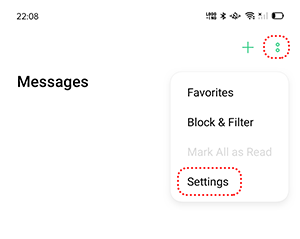 Beginning ColorOS 7.0/7.1, System Apps has been removed in Settings. The settings for system apps like Phone, Contacts, Weather, Clock, Messages, Camera, and Photos is already available on the app itself. For example, open the [Messages] app, tap the 2-dots icon in the upper right corner > [Settings] to access its settings.