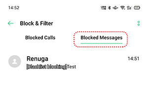 Alternatively, you can also view the blocked message in the [Messages] app > Tap the 2-dots icon in the upper right corner > [Block & Filter] > [Blocked Messages].