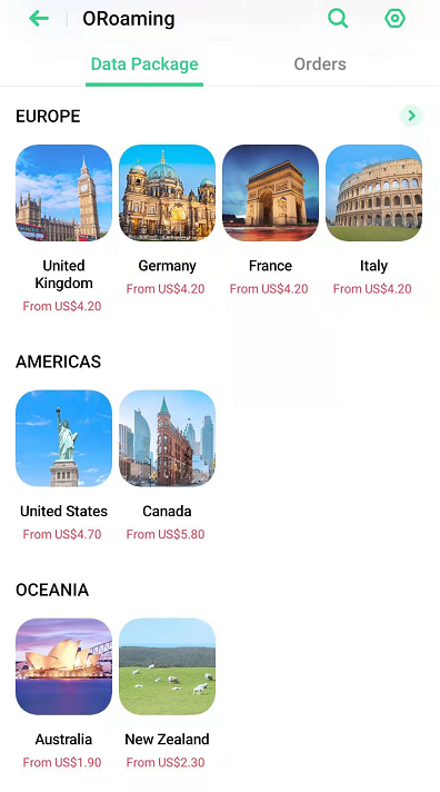 ORoaming provides cheaper data packages of local carriers across many places in the world. Purchasing this data package lets you access the Internet without a SIM card. Cool huh?